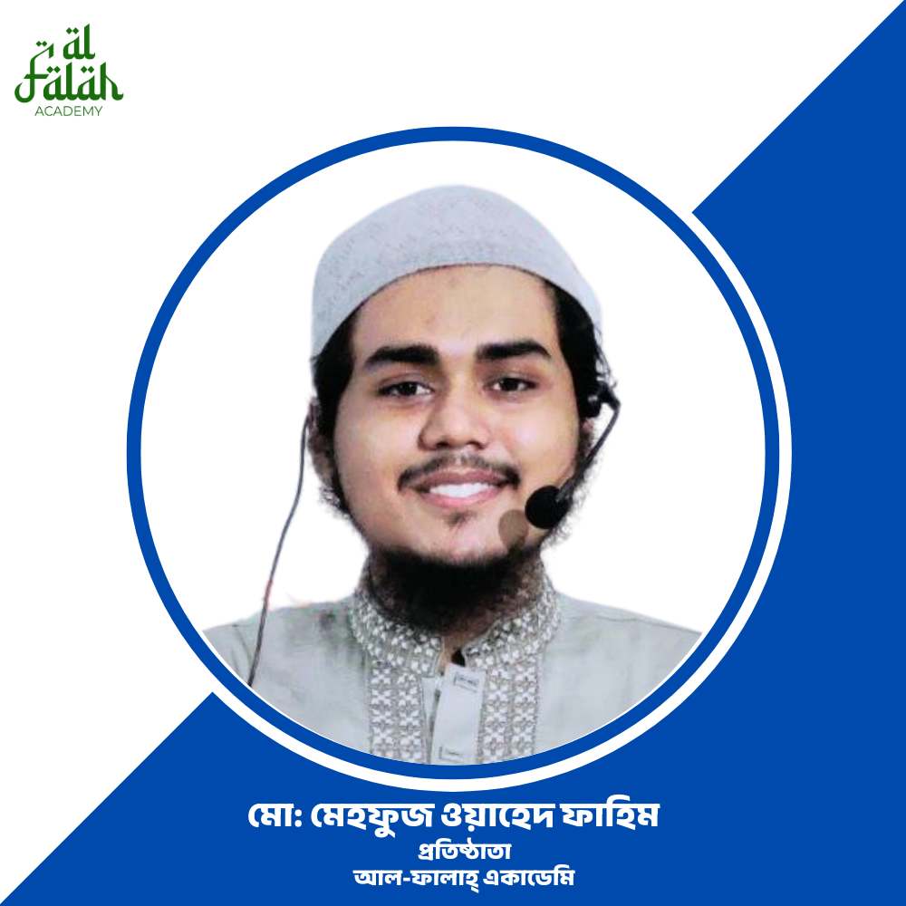 আসসালামু আলাইকুম ওয়ারাহমাতুল্লাহি ওয়াবারাকাতুহু। "আল ফালাহ একাডেমি এমন একটি বিশ্বাস দ্বারা পরিচালিত যা বলে, ইসলামী জ্ঞান একটি অর্থবহ ও পরিপূর্ণ জীবনের ভিত্তি। এই প্ল্যাটফর্মটি তৈরি হয়েছে এমন একটি ভিশন থেকে, যেখানে প্রতিটি ব্যক্তির জন্য প্রামাণিক ইসলামী শিক্ষা সহজলভ্য হবে, তারা যে কোনো পর্যায়েই থাকুক না কেন তাদের আধ্যাত্মিক যাত্রায়।