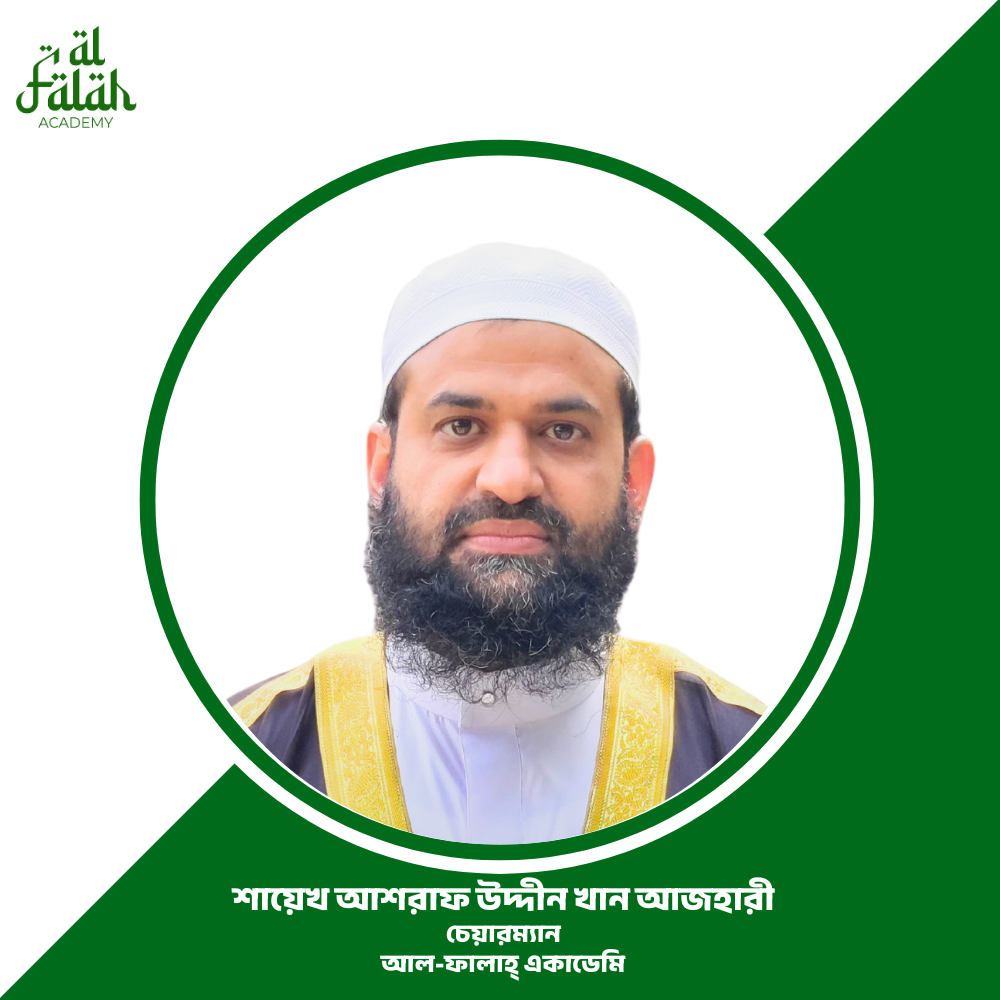 "আল ফালাহ একাডেমি ইসলামী জ্ঞানের আলো ছড়িয়ে দেওয়া এবং ঈমান ও বোঝাপড়ার উপর ভিত্তি করে একটি সম্প্রদায় গড়ে তোলার জন্য নিবেদিত। চেয়ারম্যান হিসেবে, এটি আমার জন্য একটি সম্মান এবং দায়িত্ব যে আমি এমন একটি উদ্যোগ পরিচালনা করি যা প্রামাণিক শিক্ষার সাথে আধুনিক শিক্ষার্থীদের সংযোগ স্থাপন করতে সাহায্য করে। আমাদের লক্ষ্য শুধুমাত্র শিক্ষাদান নয়, বরং মানুষকে ইসলামের আদর্শ অনুযায়ী জীবনযাপন করতে অনুপ্রাণিত করা। আমরা বিশ্বাস করি যে জ্ঞানের মাধ্যমে আমরা জীবন এবং সমাজকে পরিবর্তন করতে পারি এবং এমন একটি পৃথিবী তৈরি করতে পারি যা করুণা, ন্যায়পরায়ণতা এবং ঐক্যের মূল্যবোধকে প্রতিফলিত করে। আমি আপনাকে আমাদের সাথে এই আবিষ্কারের যাত্রায় যোগ দেওয়ার আমন্ত্রণ জানাই। চলুন, আমরা একসাথে আল্লাহ (সুবহানাহু ওয়া তা'আলা) প্রদত্ত প্রকৃত সফলতা অর্জনের জন্য চেষ্টা করি—এই দুনিয়া এবং আখিরাতে। আল্লাহ (সুবহানাহু ওয়া তা'আলা) আমাদের পথ দেখান এবং এই মহৎ মিশন পূরণ করার শক্তি প্রদান করুন।"